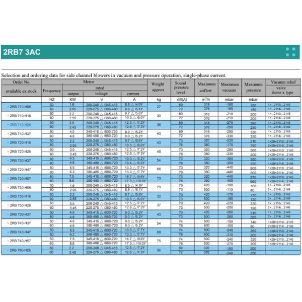 | Model | Frequency | Output | Voltage | current | Max airflow | Max vacuum | Max pressure | |||